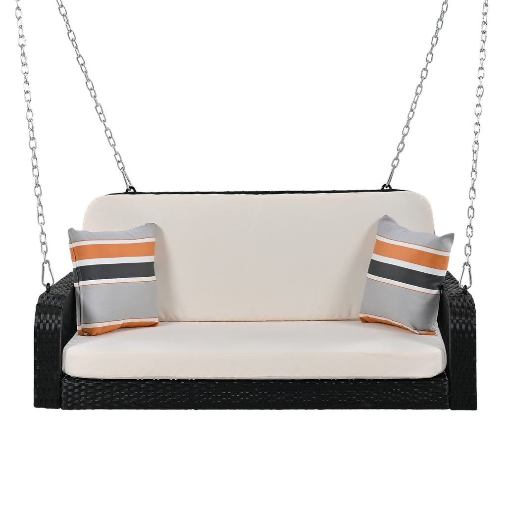 • GO PE Wicker Porch Swing, 2-Seater Hanging Bench With Chains, Patio Furniture Swing For