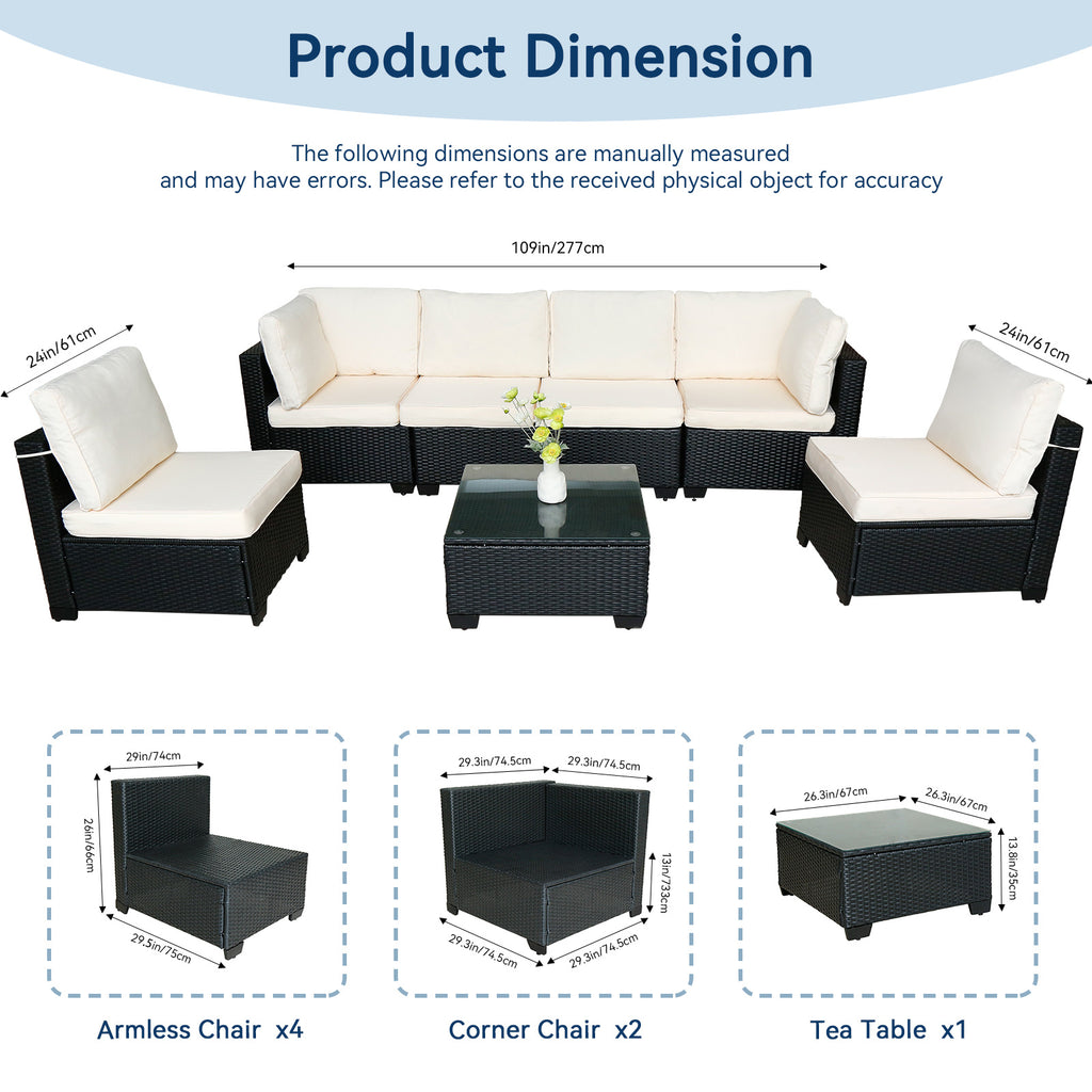 Product Name:Seven-Piece Sofa Set Table With Sofa Chair Black PE Rattan Outdoor Furniture 7-JH002 Box 3-1-2-3 With Beige Color Cushion